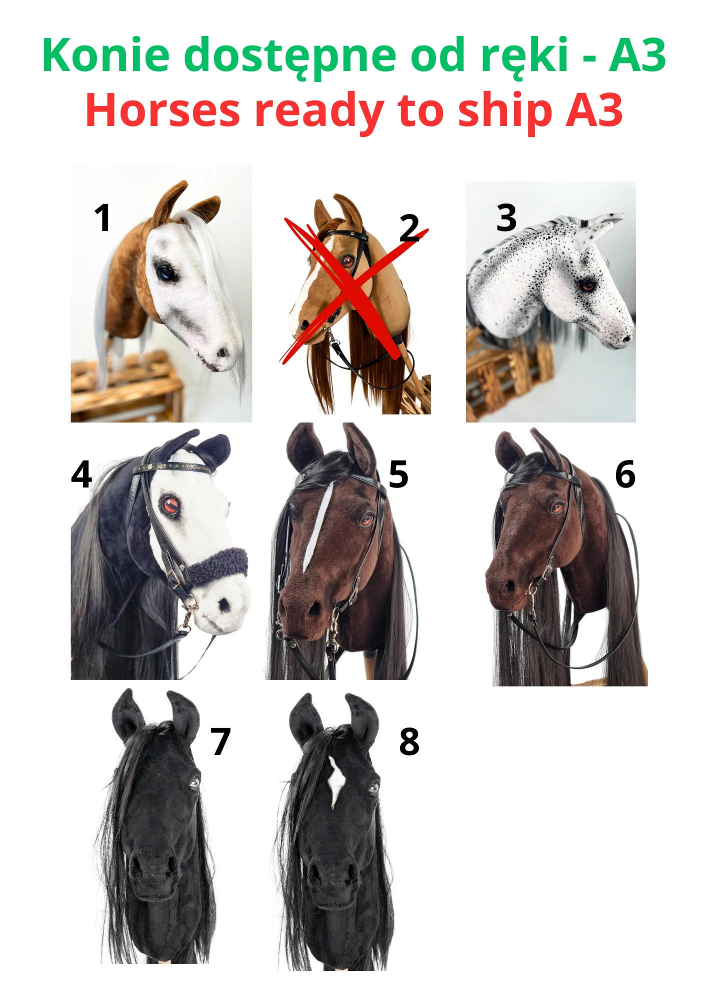 Zapraszamy do przejrzenia PROMOCJI na stronie głównej - tradycyjne hobby horse w cenie 100 PLN/sztuka, dostępnych 9 sztuk. Kilka koni realistycznych w cenie PROMOCYJNEJ 490 PLN.